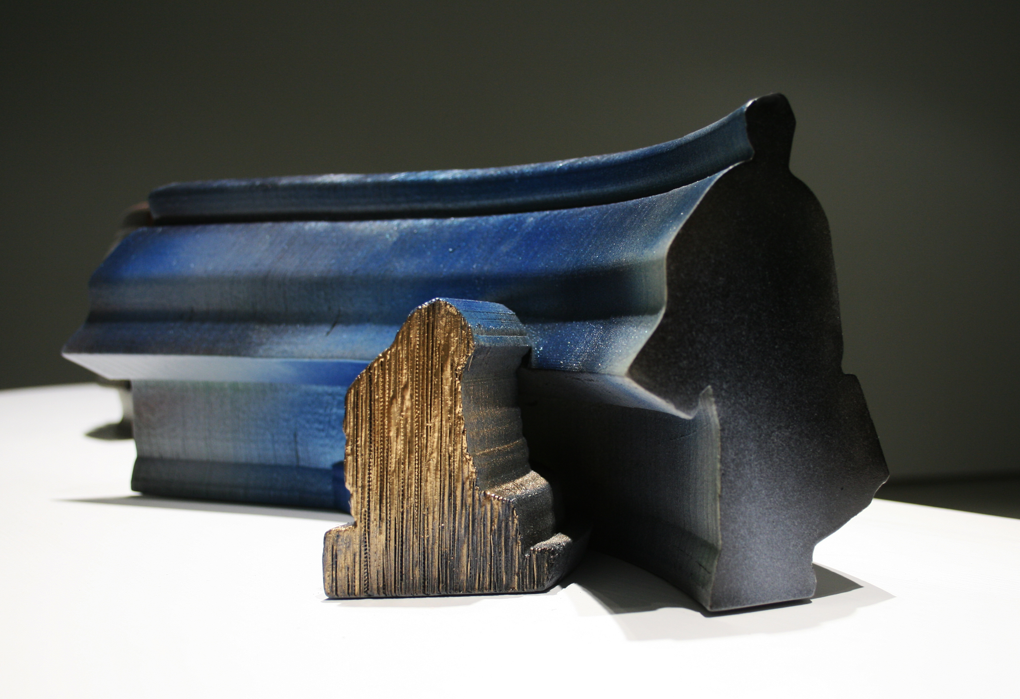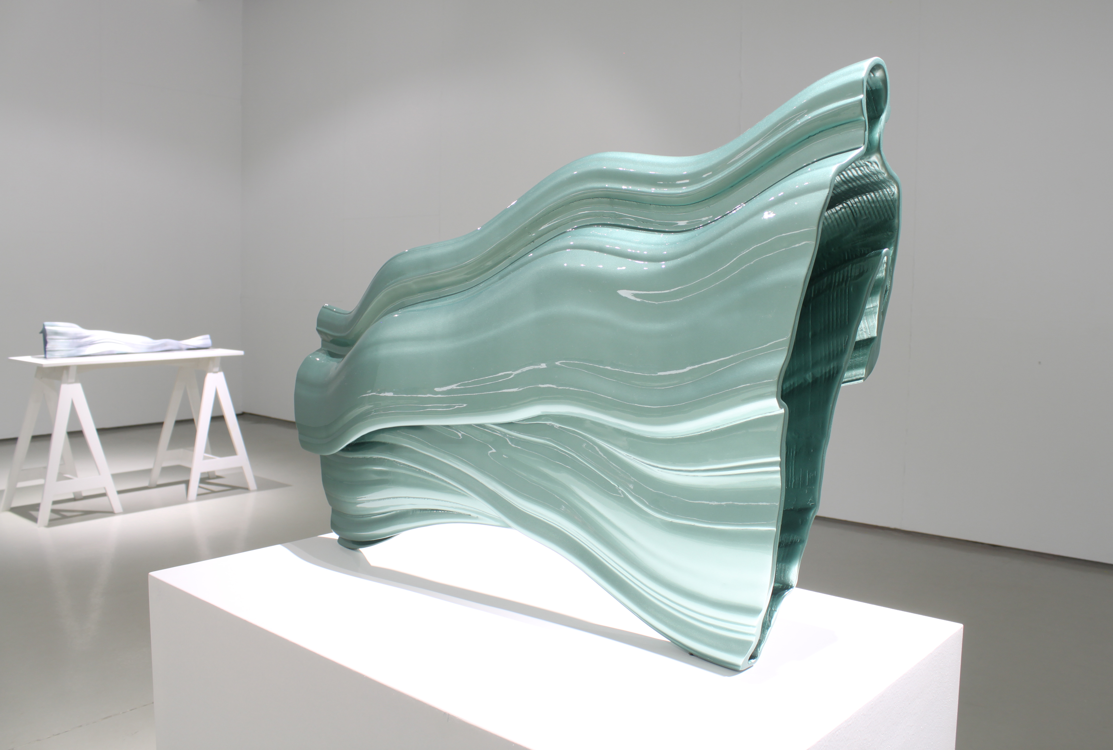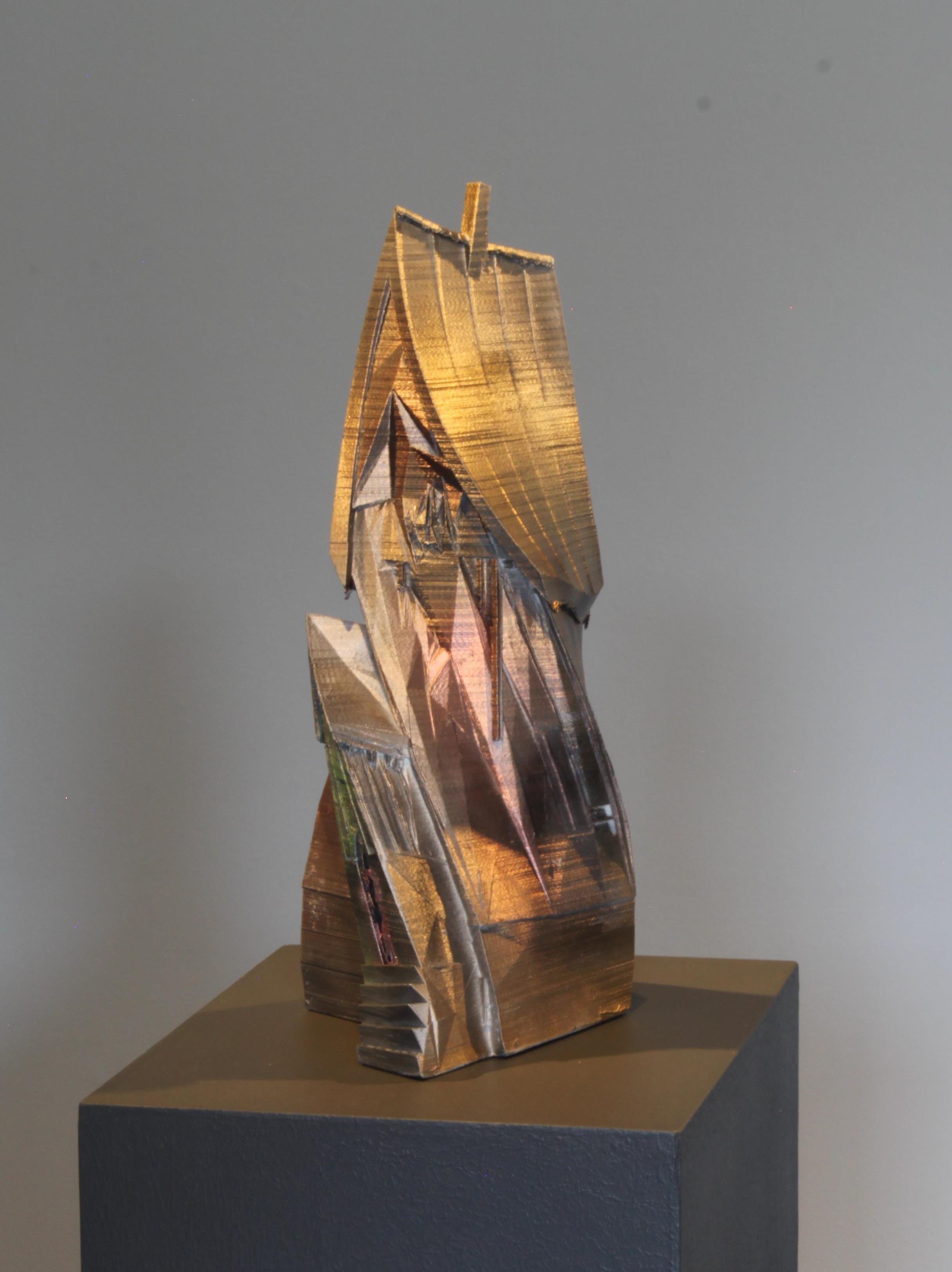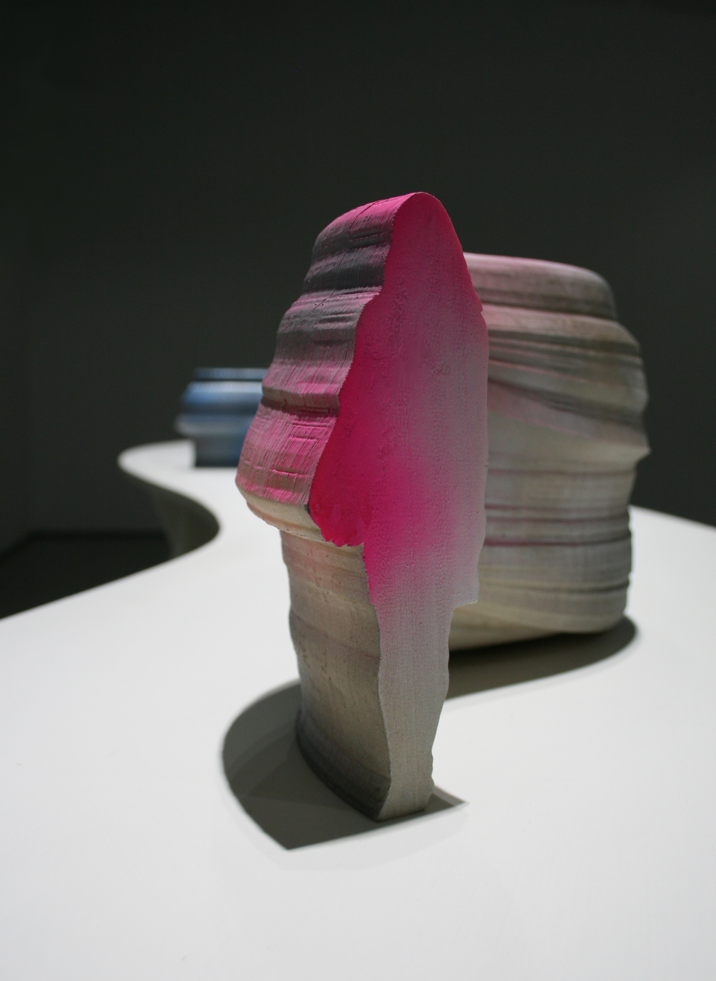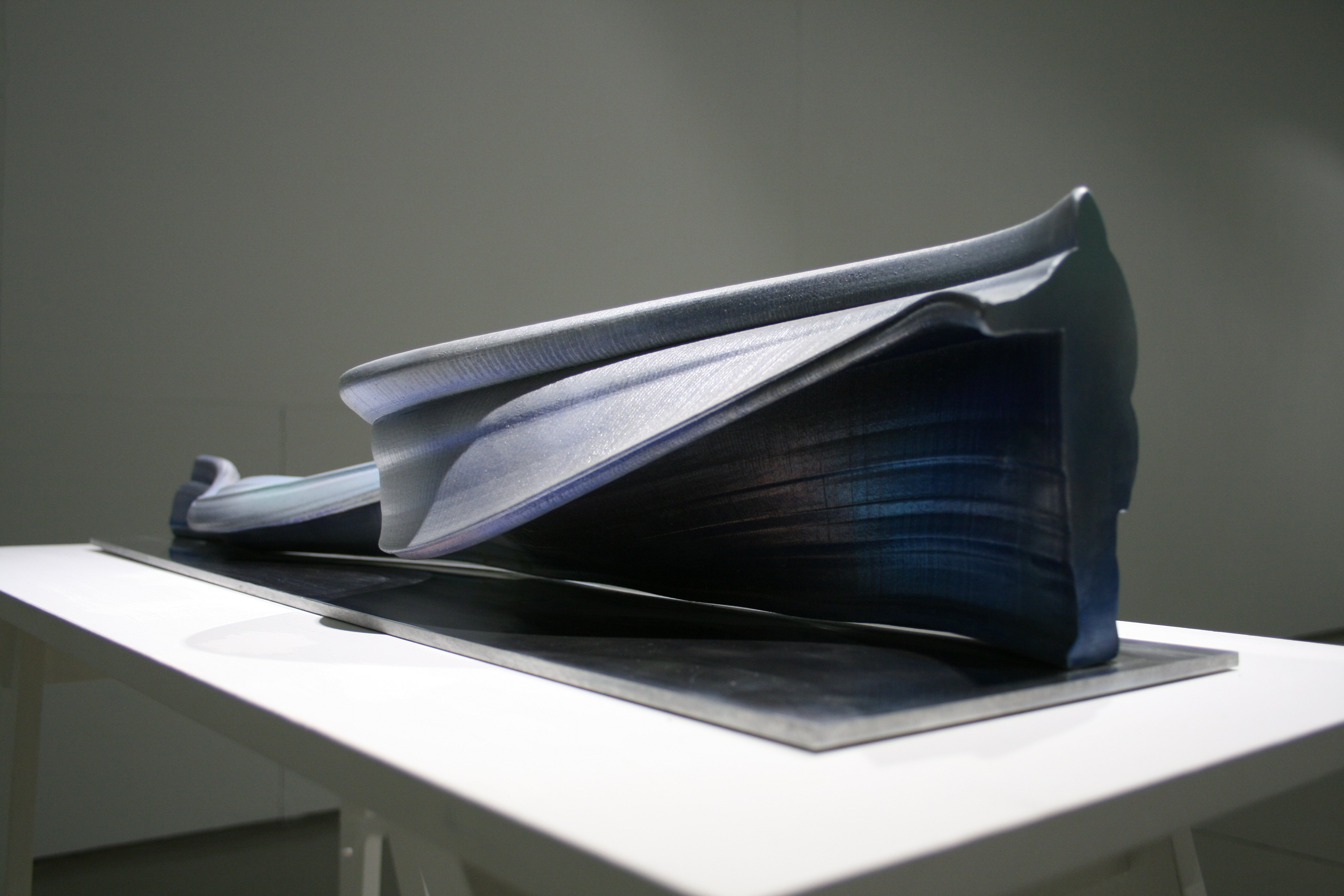 Into the shapes of 3d printed sculptures have been recorded human movements. SSilhouette lines change into each other (e.g. from a child to an adult), and at the same time the outlines of the sculpture are drawn. The sculptures are fragments or condensations of time. As the silhouette lines build forms, various breaks, twists, collisions occur, and I call the resulting forms manifestations of an interrupted continuum.