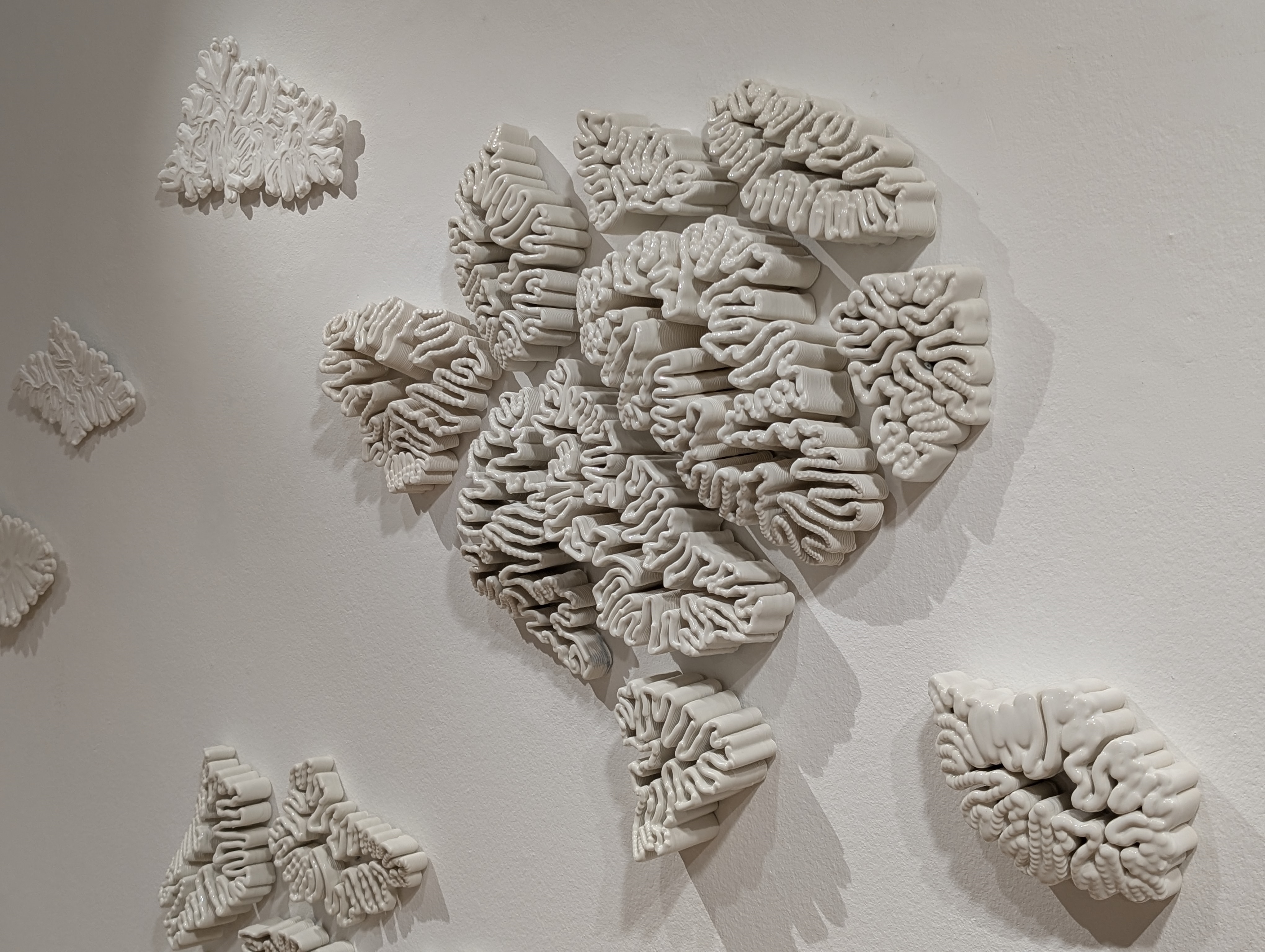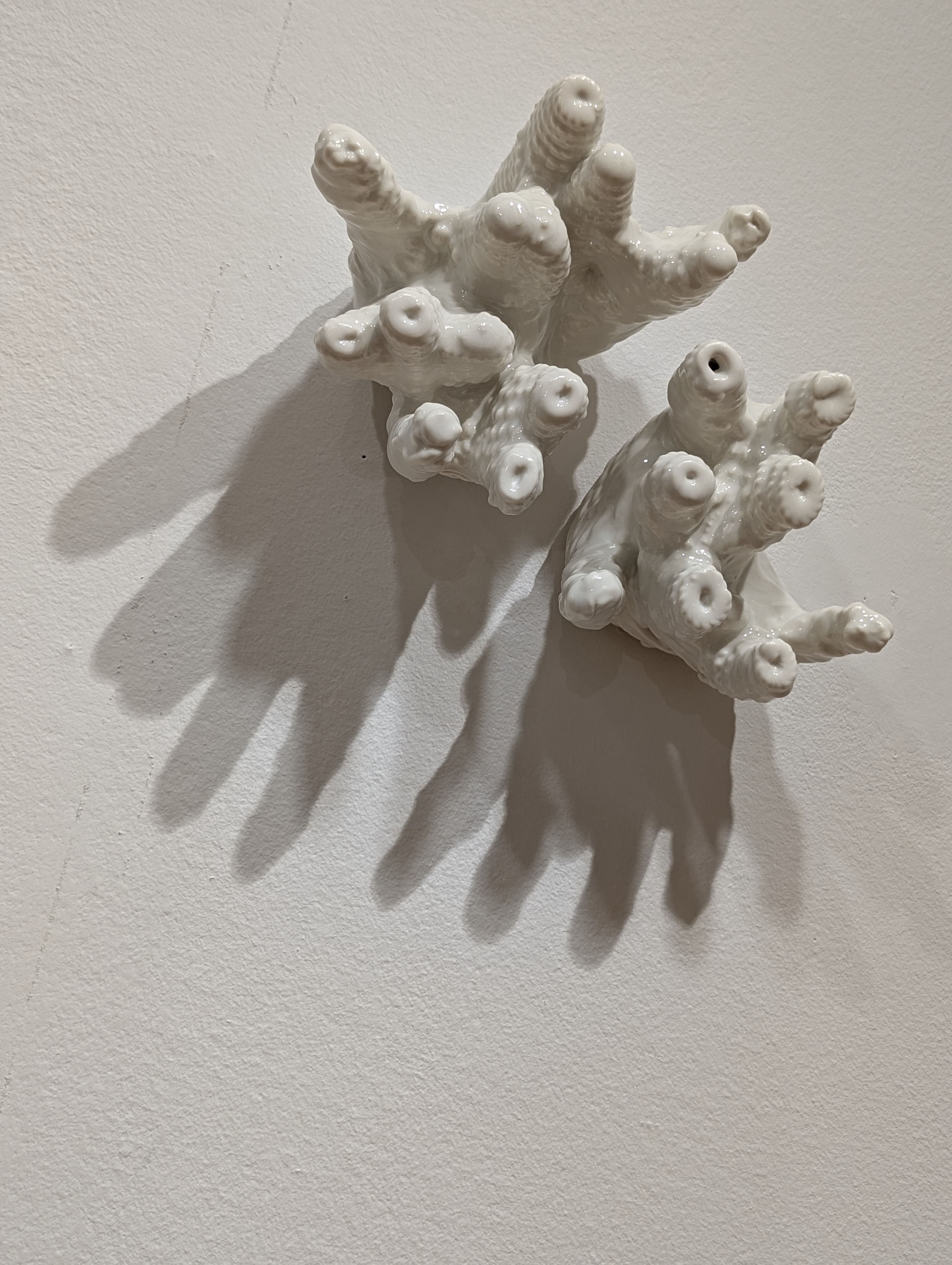 The skull has long been a permanent symbol in art, representing death. For me, the metaphor for the dying of marine species in the wake of environmental catastrophe is coral that has lost its color. I have used 3D printed porcelain as the medium for these works. Its translucent white color evokes a lifeless seabed, reflecting the stark reality of coral bleaching.