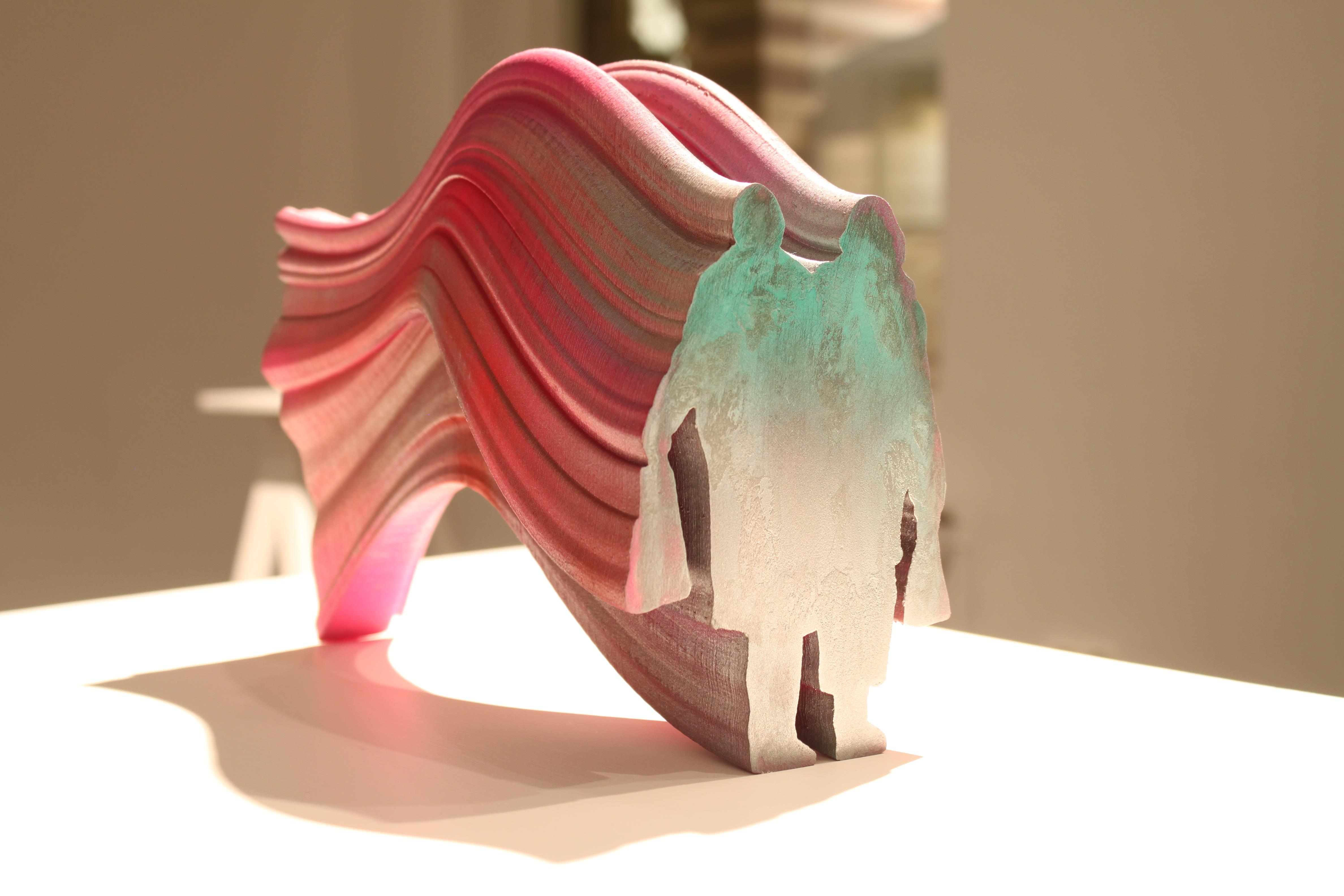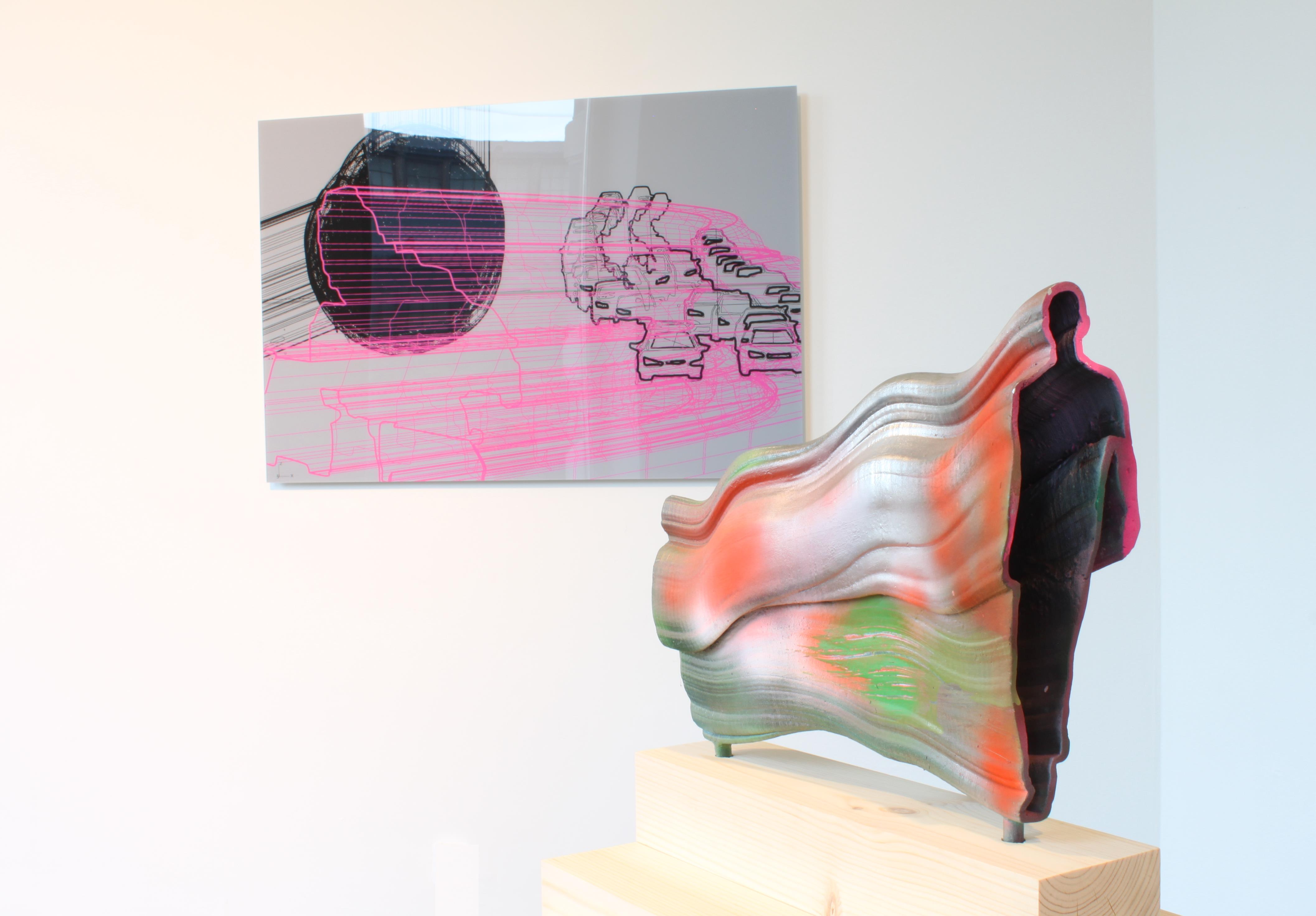 Using 3D modeling softwares, I can create forms that would be difficult for me to make by hand. I find the subjects for my sculptures in everyday life: I photograph and sketch people, alter contours of their silhouettes, and then transform these shapes into 3D modelled sculptures. This process becomes passage through unexpected forms.